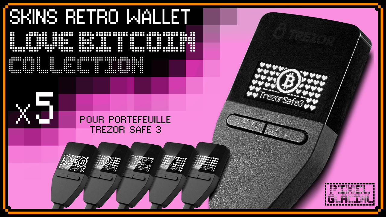 Q : Est-ce que ces visuels sont officiels ? Non : il s’agit de créations indépendantes 100 % compatibles avec Trezor, réalisées par un graphiste passionné de pixel art et de crypto-culture.